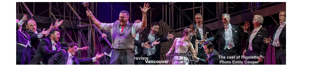 Of all the operas composed in the mid-nineteenth century, Giuseppe Verdi’s taut tragedy, that in some ways is also a cautionary tale, Rigoletto with its colourful characters and eternal themes of vengeance, passion and lost innocence is the one that perhaps best translates to a modern telling. Relocated from Mantua, Italy to London, England and brought forward to just a hundred and fifty years ago, Rigoletto is in some ways also a cautionary tale of a comedian who goes too far with his buffoonery and his daughter, who loves not prudently, but too well. The opera, originally named La Maledizione, but later changed to that of its central character Rigoletto, a master of bad karma, is densely packed with emotional arias and filled with curses and ironic twists. Vancouver Opera has for this production assembled a fine cast of singers who breathe life into their roles. The reward is that audiences enjoy a production is full of passion and high drama, where everyone delivers, and even the minor characters filling in.