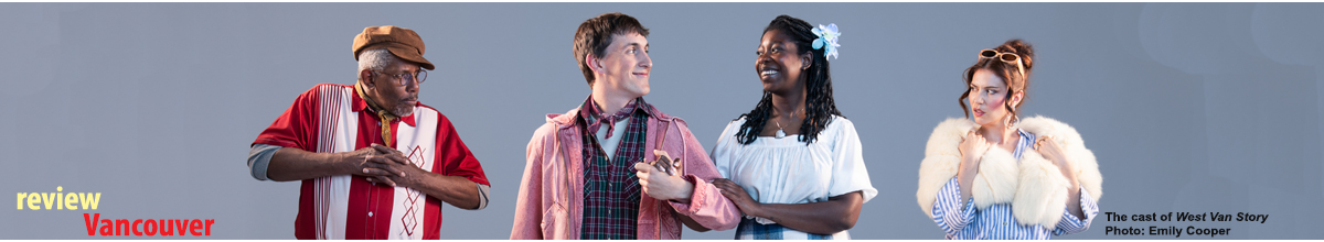 The East Van Panto returns with its familiar mix of laughter, local references, and affectionate humour. This year brings a noticeable shift in tone. West Van Story opens up the tradition by drawing on West Side Story and Romeo and Juliet while keeping the story rooted in the Vancouver of today. When Holly, played by Ivy Charles, and her curling team The Hurry Hards are swept into East Van by a dramatic weather event, she finds herself in a world that challenges every certainty she carried in with her. The contrast between the two sides of the water is explored with both comedy and care. Holly arrives polished and confident, while East Van is offered as a lively, creative, and unpredictable community. One of the most memorable performances of the night comes from Tom Pickett as the East Van Side itself. Dressed as the enormous neighbourhood cross and wandering across the stage with wide eyed wonder, he delivers the line, “I never know where I am going but I always end up somewhere interesting,” and the entire audience lets out a knowing laugh. He captures the generous and slightly chaotic spirit of East Van with warmth and charm. The writing by Marcus Youssef with Pedro Chamale folds in real questions about changing demographics, housing pressures, and what community means in a city that is always moving. The jokes land easily and reveal how close the two sides of Vancouver truly are. This year the satire feels more grounded in lived reality and less centred on political personalities, which makes the evening feel more sincere. Boberta Rainy, the developer parent, played by Dawn Petten, brings a confident, witty, and commanding presence to the stage. She draws spirited boos from the audience with ease. The developer children, played by Meaghan Chenosky and Ivy Charles, offer bright and confident performances that carry several scenes. The student and adult cast remain strong, committed, and engaged throughout, though a few of the youngest students appeared uncertain at moments. It did not overshadow the production, but the contrast was noticeable. Veda Hille’s music gives the show a generous heart and the songs carry the story forward with energy. Amanda Testini’s choreography is full of movement and playfulness, especially in the scenes where Holly begins to soften toward East Van. At one point she declares, “I came for a cleanse but I think East Van is cleansing me,” and the room erupts. It is this combination of humour and honesty that keeps the production engaging for adults and children. The design team gives us a stage that feels local and lovingly crafted. The hand painted set designs were among the most charming aspects of the night. They created an authentic and homemade atmosphere that reflects the community spirit at the heart of the Panto tradition. Taken together, West Van Story is a lively and thoughtful addition to the long standing East Van Panto tradition. It is full of joy, music, local humour, and a sense of connection that keeps people returning year after year. A wonderful choice for families and returning Panto fans. Book early as this show will fill quickly. Children will enjoy the adventure and silliness. Adults will appreciate the writing, music, and social commentary. And if you arrive early, DownLow Chicken is an excellent place to start the evening. © 2025 Shakeela Begum |
