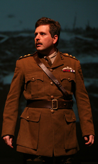 ably provided by Chris Robson. In the second act, Calderwood takes the audience through his early career as a junior officer in the cavalry before joining the Royal Flying Corps. Bishop may have been below average academically and hardly regarded as a particularly stalwart soldier, but as Calderwood vicariously illustrates, he had three qualities that would serve him well as a fighter pilot: he was an excellent marksman, he was interest in all types of aircraft and he appeared to have a total disregard for his own safety. Over the course of a two and a half hour show, Calderwood brings charisma and a degree of pathos to the myriad of characters that even includes Bishop’s benefactor Lady St Helier. Calderwood manages to exercise his dramatic range effectively, but his vocal range suffers somewhat from the occasional distraction of Robson’s piano. When he lowers his voice to close to a whisper he becomes inaudible. This may be an issue with the theatre’s sound system.