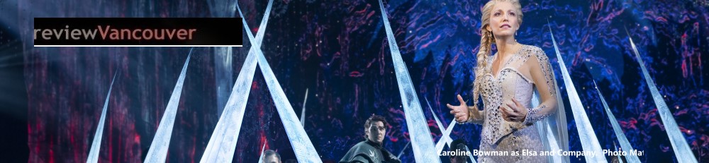 When and Where July 7- 21, 2024; Tues - Sat at 7:30pm, Sun at 6:30, matinees Thurs 18th & Saturdays at 2pm, Sundays at 1pm | Queen Elizabeth Theatre Director Michael Grandage Music Director/Conductor Faith Seetoo Choreography Rob Ashford Scenic and Costume Design Christopher Oram Lighting Design Natasha Katz Special Effects Jeremy Chernick Sound Design Peter Hylenski Video Design Finn Ross Puppet design Michael Curry Stage Manager Patricia L. Grabb Cast: Elsa Caroline Bowman Anna Lauren Nicole Chapman Young Elsa Savannah Lumar Young Anna Emma Origenes Olaf Jeremy Davis Kristoff Nicholas Edwards Hans Jack Brewer Pabbi Brian Martin Weselton Evan Duff Oaken Daniel Switzer Sven Dan Plehal Bulda Renée Reid Reviewer Elizabeth Paterson |