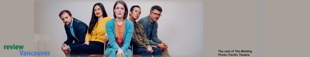 When & Where May 14 to June 7, 2025; Wed & Thur at 7:30pm, Fri & Sat at 8pm, Sat & Sun matinees at 2pm | Chalmers Activity Room at Pacific Theatre, 1420 W 12th Avenue Director Chelsea Haberlin Assistant Director Paige Louter Production Design Nemesis Collective Mental Health/Intimacy Director Aryn Mott Stage Manager Jasmin Sadhu The Cast Kaitlin Williams, Sebastien Archibald, Carmela Sison, Chris Lam & Marcus Youssef Reviewer John Anthony Jane We have all seen filmed interpretations of a therapy session as part of a television presentation that might be subject to drama, humour or both. Not everyone, however, has had to experience a therapy session first hand on their own behalf. In the ITSAZOO and Pacific Theatre production of Katherine Gauthier’s ‘fly-on-the-wall’ play Meeting the audience essentially become an ‘arms-length’ observer. Rather than staging Meeting in the regular theatre space, Pacific Theatre opted to put it on in the Chalmers Activity Room in a part of the building that they share with the Holy Trinity Anglican Church. The specific setting and what forms the dialogue is intended to promote a real time spontaneous meeting of a support group. Playwright Gauthier and director Chelsea Haberlin certainly take the audience out of their collective comfort zone and I have to say it wasn’t all that easy to examine the difficult issues rather than be just entertained (we call it “comfort” zone for a reason). If Gauthier had just wanted to create a story about a support group, she could have chosen one that dealt with gambling addiction, alcoholism or drug abuse, but she deliberately went for the last taboo – sex addiction. Her choice of subject also provides for a multitude of deviants. Rob (Sebastien Archibald) is a belligerent womaniser and serial cheater who can’t seem to leave it in his pants. His reasoning for validating his behaviour is that the women were all consenting adults. Patrick (Chris Lam) is addicted to cyberspace pornography and appears to take an academic philosophy to his particular mien. Linda (Carmela Sison) is the only female ‘client’ and would seem to be the professional in the group - in terms of career status. She hides behind a euphemism by describing herself as a “love addict.” Arthur (Marcus Youssef) is a closet paedophile who insists he has not, so far, acted on his weakness. Finally, there is Dawn (Kaitlin Williams) who is the group’s facilitator. Although not a qualified psychiatrist, she genuinely believes that she can help the people in her group, but she holds a dark secret that could impede those good intentions. Following an intermission, there was a post-performance discussion about the audience findings (with those that stayed) led by theatre facilitator Alexa Fraser and Coquitlam based counsellor Tricia-Kay Williams who acknowledged what most of us knew – that Katherine Gauthier’s dramatic account was not typical of an actual group therapy session. All the cast deserve special kudos for their courage and commitment in performing in this difficult piece of theatre, © 2025 John Anthony Jane