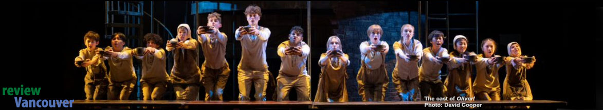 Oliver! based on the Charles Dickens classic novel Oliver Twist, is the magnum opus of Lionel Bart, a working class Jewish kid from London's East End, who alas, died destitute in 1999. It was a massive stage success almost as soon as it opened in London's theatre district over sixty years ago. It became the first British musical to be successfully exported to the ‘Great White Way’ despite (or maybe because of) the authentic Cockney accents. This Gateway Theatre production of Oliver! is very much a romantic portrayal of the human conditions that prevailed among the pauper class in Victorian London. In this musical adaptation, Oliver Twist, though delightfully portrayed by twelve-year-old Rickie Wang, really becomes more of an adjuvant character - he doesn’t even get to sing the best songs – though his solo rendition of “Where is Love” is incredibly affecting. There were some praiseworthy performances by theatre veterans as well as energetic performances by promising newcomers. Indeed, Oliver! is very much an ensemble piece – one of the reasons why it has been a popular project for high schools and dramatic arts colleges. Anthony Santiago is outstanding as that grisly old reprobate Fagin, whose self-serving dogma negates any redeeming features he may have as a guardian or benefactor. Santiago's reading of Fagin is primarily comic – but definitely stops short of being cartoonish. Nonetheless, he manages to bring to the character a certain camp that has a perverse edge. Santiago turns the mischievous dial up a couple of notches with his renditions of "You've Got to Pick a Pocket or Two" and is disarmingly wicked with “Reviewing the Situation." The Children who make up the spirited members of Fagin’s gang are well rehearsed and perform to the same high standard as the senior cast members. The scene-stealer of the company is surely Lucas Gregory in the role of the street-wise pickpocket Artful Dodger. He is at his best when leading a preposterously well choreographed sing-along version of “Consider Yourself (one of us),” Victor Hunter and Cecilly Day play off each other to provide some knee-slapping humour as the blustery Bumble and the coy Widow Corney. There is a hilarious scene in the first act, where Bumble begins to make amorous advances after the orphans have been sent to bed; the coquettish widow feigns resistance, but ends up on Bumble's lap, when he eventually proposes. Donnie Tejani’s authentic looking Victorian clothing is appropriate for the period and location of nineteenth century London. Ryan Cormack’s multi-purpose rotating set and Sophie Tang’s sublime lighting set up the distinction of social levels. The unseen orchestra led by Sean Bayntun does justice to Lionel Bart’s beautifully crafted melodies without ever overpowering the singers. Josh Epstein has presented the faithful Gateway Theatre audiences with an outstanding seasonal entertainment that is (generally) suitable for the whole family. There are a couple of scenes that depict partner abuse, but fight coordinators Mike Kovac and Sylvie La Riviere handle it well. Parents escorting children (over ten) may need to explain why it’s essential to the story. Oliver! is excellent musical theatre, yet like the novel that serves as its inspiration, it is at its core, a morality tale. © 2024 John Anthony Jane |