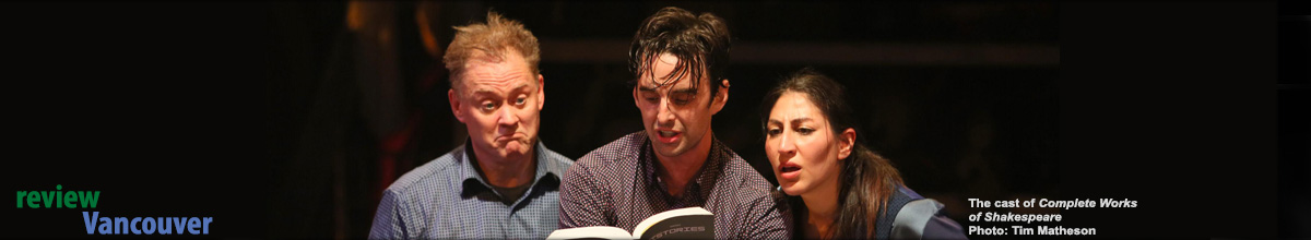 When & Where July 1 to September 20, 2025 | Vanier Park, Vancouver Director Mark Chavez Choreographer: Amanda Testini Fight & Intimacy Director Sam Jeffery Set Designer Ryan Cormack Costume Designer Alaia Hamer Lighting Designer Jeff Harrison Composer & Sound Designer Anton Lipovetsky Stage Manager Rebecca Mulvihill. Purchase tickets online here. Reviewer Christian Steckler When one sees such a title as this for an evening of entertainment, one can hardly expect full theatrical productions of every play and sonnet that the bard wrote. The evening does deliver, as promised, a passing reference to all published works of Shakespeare, so the promise is kept. Some references pass with a whisper, a wink, or a nod, but references they are. The task is set for the performers to draw attention to every single play and sonnet that Shakespeare published within a strict time limit of ninety minutes, not including an intermission. The threatened penalty is particularly distasteful (excuse the pun) for the three performers charged with the feat. With 30-something pieces to go through, the prospects are daunting. Mark Chavez’ direction of the three boisterous performers must have been a challenge, but one that worked out well. The performers rotate through roles on different evenings, so names mentioned here are the actors at play when this reviewer attended. I say, “at play” because the joy and fun abandon with which the actors behaved was exactly that. Their antics were rambunctious, their panic, compelling, and their choices and takes on the scenes they played out, hilarious. Craig Erickson, Tess Degenstein and Arghavan Jenati kept the audience in stitches as they wove (excuse the pun) their ways in and out of the countless characters they played…and in and out of the performance, itself, with personal interjections that further delighted the audience. Sets were simple, minimal, and functional. Costumes - some bizarre - were visibly shelved for clumsy access in harassed states of mind, adding to the fun. Lighting and sound effectively added to the performance. Of note was one performer in sound only, who dictated the terms and rules of the evening, and who interjected new challenges as the time ran out…increasing the suspense and the delightful raucous laughter of the audience. This production is not, by any means, typical heady Shakespeare. Those who’ve been exposed to the bard’s works will recognize the references, and those who are less familiar will get a nibble of some of the plots in his works. Everyone, though, will have a rollicking good time. See it. © Christian Steckler, 2025 |