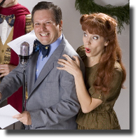 While Lucia Frangione is treading the boards in Noël Coward’s Brief Encounter at the Vancouver Playhouse, her 1993 seasonal play about a little radio station that could, Christmas on the Air is warming the hearts (not to mention fingers and toes) of audiences over at the south end of the Granville Street bridge in the basement of the Holy Trinity Anglican Church on 12th Avenue. You know about radio? That’s television without the pictures. Time was when “steam” radio was our major source of information and home entertainment. Christmas on the Air takes the audience back to the Christmas Eve of 1949 with a nostalgic romp about CKOS (no doubt a play on the word chaos), a fictitious Vancouver radio station and its live radio broadcast in front of a studio audience. The audience even gets to play a small but significant part in the production having to clap on cue when signalled by a station staffer holding up a board that shows the word “APPLAUSE.” The show is of two hours duration, presented in ‘real time’ and offers a miscellany of Christmas stories, festive songs, weather reports and a few vintage “paid public announcements.” The pace is geared more towards a hectic radio programme rather than a theatrical play, so the action does, at times, get pretty frenetic. The Christmas ‘special’ is delivered over the airwaves by a corybantic station manager Percival B. Frank (Damon Calderwood) and his amenable wife Yolanda (Lalainia Lindbjerg), the super-glue who holds everything and everyone together amid the maelstrom. They get some help that is never scarce of enthusiasm, but is often lacking in proficiency, from their son Danny (Benjamin Elliot), Sylvia (Seana-Lee Wood), who gives savvy kitchen advice and provides stellar piano accompaniment to “the sweet waves of music” and Kitty McNally (Diana Kaarina), the newest member of this radio family. The show is in danger of going off the rails when Kitty turns up at the studio with her newborn baby whose existence she, somehow “forget” to mention when she was hired for the programme, nor did she think it worthwhile disclosing it to Danny, who obviously carries a torch for her. Nonetheless, she has little problem revealing her plight to the listeners in a hilarious parody of Tannenbaum (O Christmas Tree). Despite some inherent confusion, a result of awkward pacing, the outstanding ensemble cast fashion Christmas on the Air into a satisfying mix of poignant humour, madcap physical comedy and great family-friendly fun. © 2010 John Jane |