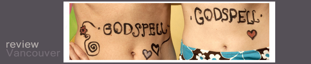 When Sarah Rodgers decided to take Godspell out of the dusty seventies archives and give it a brand new lease on life, she evidently felt it might be fun to make it a real nostalgia-fest by incorporating the production with the schtick from that zany comedy sketch television show, Rowan and Martin’s Laugh-in. The good news is that it actually works. Godspell first surfaced Off-Broadway roughly midway through Laugh-in’s five-year run on NBC, taking a non-linear, secular approach to familiar parables from the Gospel according to Matthew. While the television programme was renowned for one-liners and rapid-fire sketches that were charged with sexual innuendo, or were just plain dumb; the connotation, though broad, is not as absurd as might be imagined since both rely on the exuberance and spontaneity of its cast. The bad news is that if you’re too young to have watched those Laugh-in TV shows or just didn’t bother to tune in on Monday evenings between January ’68 and May ’73, you might find yourself scratching your head at some of the bizarre elements that seemed funny back then. Bryan Pollock’s pastel-coloured set is an essential feature of this adaptation, capturing many of the physical components reminiscent of the original studio in “beautiful downtown Burbank.” The famous wall - where cast members popped their heads out of camouflaged portals to utter 5-second gags – is there and takes up the entire east side of the stage, with the new lighting providing an enhanced theatre experience Goldie Hawn is likely the most celebrated of Laugh-in’s alumni, but Lily Tomlin and Eileen Breenan have also done well since leaving the show. Ruth Buzzi, one of only four regulars to appear in every episode, is still making people laugh at 73. Tim Bratton who plays a phlegmatic Jesus and Ron Reed who steps up to double as a bucolic John the Baptist and Judas are the only actors to have their characters identified with Godspell. The rest of the cast assume the names from the ‘Laugh-in’ alumni. It’s a talented local group of actors who have signed on for Pacific Theatre’s charming production, but none of them are really strong vocally – Erin Germaine Mahoney comes closest to emulating Jo Anne Worley’s powerhouse voice. However, since the songs are mostly anthemic with spirited melodies and little harmonic structure they are well handled within the performer’s vocal range. Kaitlin Williams (covering the role of Pamela Austin) gives an affecting, effortless rendition of one of the show’s best songs, “Day by Day.” Godspell seems to be one of those musicals that can be adapted to suit any venue and almost any fashion style, surely a strong testament to its universal appeal. By midway through the second act, I didn’t even notice how incongruous it was to see Dan Rowan and Dick Martin ( Joel Stephanson & John Voth) serving wine at the Last Supper dressed in Tuxedos. © 2010 John Jane |