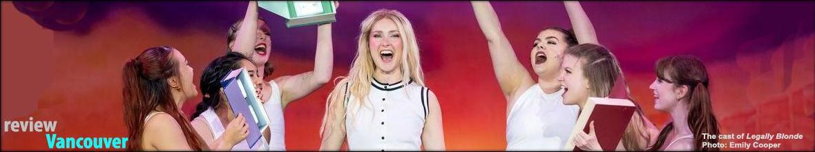 When & Where (alternative evenings) from June 28 to August 16, 2025.All shows at 8pm, except on Fireworks Nights (July 19, 23 & 26) when shows begin at 7pm | Malkin Bowl in Stanley Park Director Jayme Armstrong Choreography Lyndsey Britten Music Director Eliza De Castro Set & Costume Design Brian Ball Lighting Design Robert Sondergaard Sound Design Brad Danyluk Stage Manager Philomena Sondergaard Main Cast: Elle Woods Abby Woodhouse Emmett Forrest Nathaniel Johnson Warner Huntington Connor Hawkins Vivienne Kensington Viviana Renteria Paulette Madeleine Suddaby Brooke Wyndham Angella Cody Professor Callahan Peter Jorgensen Enid Hoopes Heather Mislang Reviewer John Anthony Jane |