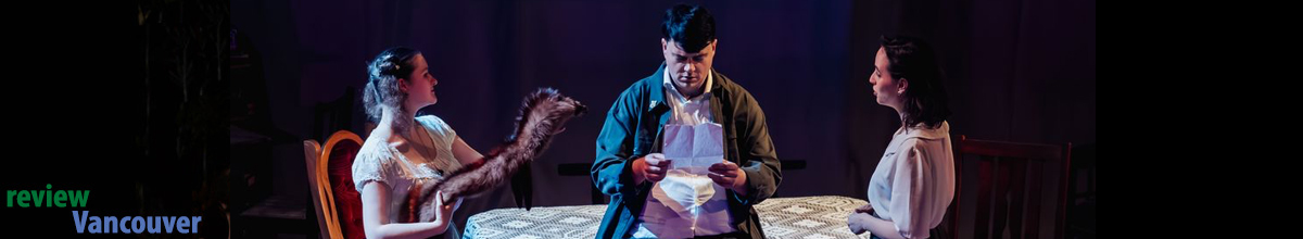 Dates and Venue: April 17, 18, and 19 | The ANNEX, 823 Seymour Street, Vancouver Composer: Roan Shankaruk; Director: Christopher Lam; Music Director: Perri Lo; Art Director: Jessica Cole; Intimacy Director: Natasha Martina; Stage Manager: Andy Sandberg; Lighting Designer: Christian Ching; Shadow Puppeteer: Matthew Gorlitz; Supertitles: Emma Jang Reviewer: Christian Steckler It is always stimulating to see new approaches to staged events. It keeps the arts world alive and thriving and full of promise. Adapted from the short story by D.H. Lawrence, this new production of The Fox, an exciting, innovative chamber opera, showcases the talent of its creator, Roan Shankaruk. We eagerly await more from this artist, with her clear, sensitive, and nuanced characterizations and plot development in operatic production. Christopher Lam’s keen direction keeps the audience focused on the characters’ actions, and allows insight into their psyches, as the mystery of the metaphorical fox, unfolds. Special mention must be made of the musical backdrop to this production…undulating, surreal, always magically, almost subliminally carrying the audience through the changing emotional undercurrents of the characters. Perri Lo masterfully directs the accomplished musicians, pianist Derek Stanyer, violinist Teodora Dimova, and cellist Min Jee Yoon, through this ethereal journey. Of course, there is no opera without the singers. All three characters have strong voices and deliver spellbinding performances. Jill Banford (Renee Farjardo) and Nellie March (Taryn Plater) are two women who have created a happy and satisfying life together on a farm in rural England at the close of World War I. Their partnership seems perfectly balanced, and there are obvious hints of romantic intimacy between them. Their problem at the moment is a pesky fox, which has been killing chickens and eating into their already spare profit margin. Jill, the more domestic of the two, and dependent on Nellie for her emotional stability, is vexed by the fox. Nellie, the more steady and physical one, has been trying to find and shoot the fox, but has met with failure. On one notable occasion, she has a perfect opportunity to kill the fox at close range, but is mysteriously entranced by its presence, and fails to take the shot. One day, a returning soldier enters their world. He identifies himself as Henry Grenfel (Chris Donlevy), the grandson of the deceased former owner of the farm. Jill finds his presence disturbing and nerve-wracking, while Nellie takes him in stride. Gradually, his presence threatens the happy and cohesive life of the two women. As the plot unfolds, the metaphorical puzzle of the fox unfolds with it. The performers and production team create an evening of authentic entertainment, elevating the quality of innovative ventures, and bringing anticipation of more successes in operatic performances to Vancouver audiences. This show deserves more than the short run it has. ©
