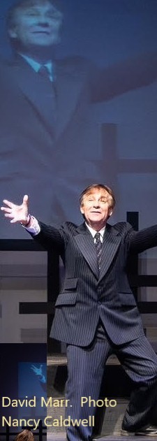 | A long time ago Paddy Chayefsky wrote a satirical but astonishingly prescient film script about a traditional TV news program up for grabs by corporate interests. Now Lee Hall's adaptation for the stage feels more like commentary on current events. In a perfectly calibrated performance David Marr is news anchor for the troubled UBS TV Network, Howard Beale. Beale has just been given notice by his best and probably only friend, News Division head, Max Schumacher (Tom McBeath). Drinking too much, bored by the tenor of the news, Beale throws his script away and, breaking into a passionate rant, announces his suicide filmed live for his final program. The ratings shoot from bottom to top of the charts and management hires Beale back as the mad prophet of the airwaves. "I’m mad as hell", he shouts, driving his TV audience to stand at the windows, yelling, "And I’m not going to take it any more.” Ambitious program exec Diana Christiansen (a ruthless Alison Wandzura) moves his show to Entertainment. Old-school newsman Max is horrified. Together with his old chum Board president Ed Ruddy (Eric Epstein) he wades into backroom politicking. At the same time, Max is besotted with Diana Christiansen, and while he refuses her professional tactics, he begins an affair with her. Tom McBeath offers a masterclass in effortless acting, realistic, understated, and boiling with passion. Meanwhile the network is about to be taken over by a bigger corporation backed by 'Arab' money with all the local exec's, Harry Hunter (Patrick Bahrich), Nelson Chaney (Kazz Lessard) and especially V-P Frank Hackett (Gorden Law), plotting and manoeuvring. Diana Christiansen is negotiating with terrorist organizations for a show of their own. The second act puts the audience on stage in the studio for the Howard Beale Show (HBS), making us as viewers complicit in Harold’s unravelling and the backroom skulduggery. We finally meet the shadowy, not to mention shady, Arthur, the ultimate buyer of the network. Cool, barefoot and casually solving a Rubik’s cube as he talks, Kyle Mitchell Swanson is the epitome of today’s super-executive. Others in the cast double as the busy, well-coordinated studio crew, Board members, secretaries, terrorist, and Max’s wife (in a sharp performance from Matthilde Shisko). The set, by Emily Dotson, is spacious with several levels and an open framework, (network?) screen. Lighting design by Mark Carter kept scene changes clear and ambiance apt. This was an ambitiously technical show for a small company. Congratulations.