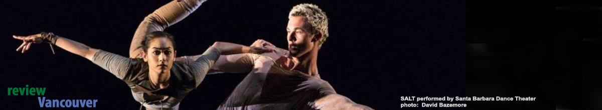| Salt had the attention of the audience right from the start on Friday night with a pulsing beat, clipped dance movements of the performers and a dim stage. The dancers performing in Salt bring an incredible depth of dance experience to the stage. They are all highly accomplished in the world of dance. It was riveting to be immersed in their movements as they worked through the choreography of the piece. Joshua Beamish has said that the inspiration for Salt was derived partly from the apocalyptic sense of Mad Max: Fury Road and the drought happening in California while he was creating Salt. There is a sense of isolation and tension within the movements of the dancers. Their remoteness from each other in the opening sequences underlines this isolation and tension. Suffering is brought into the piece with the movement of a dancer as he struggles with an inner pain while those around him stay remote. Beamish is expressing through the choreography a world in which one has to struggle to survive. In today’s world ravished by war and climate change Salt is asking an appropriate question. How will we react to each other in a world changed beyond our recognition? Beamish brings hope into the equation with the incredibly moving and tender pas de deux at the close of Salt. The intimate dance of soft and caring movements toward each other renews faith that human beings will care for each other and survive. Dancing on the Edge is in its 36th year of bringing innovative and thought provoking dance to Vancouver. Joshua Beamish’s Salt reminds us of the powerful voice dance contributes to current world concerns. © 2024 Nancie Ottem | ||||||||||||||||||||||||||||||||||||||||||