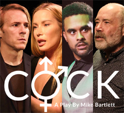 COCK is Mike Bartlett’s four handed, single act play propounding an exploration of love, sex and physical attraction. When the play opens, it feels like we have joined it in the middle. We catch John (Troy Mundle) in a personal crisis of sexual identity. He vacillates between his long term gay relationship with a partner with whom he shares accommodation and a recent encounter with an attractive divorcee. Bartlett wrote the play in 2009 and set it in London at that time. However, the essential theme is just as relevant today – perhaps even more so. Actors seem to be in a constant state of mobility, moving around each other inside a roughly ten-foot diameter circle. While actors only leave the circle when they withdraw from a scene, camera operators however, appear to enter and leave at will. This business around the performance I found to be at times distracting. Bartlett has created